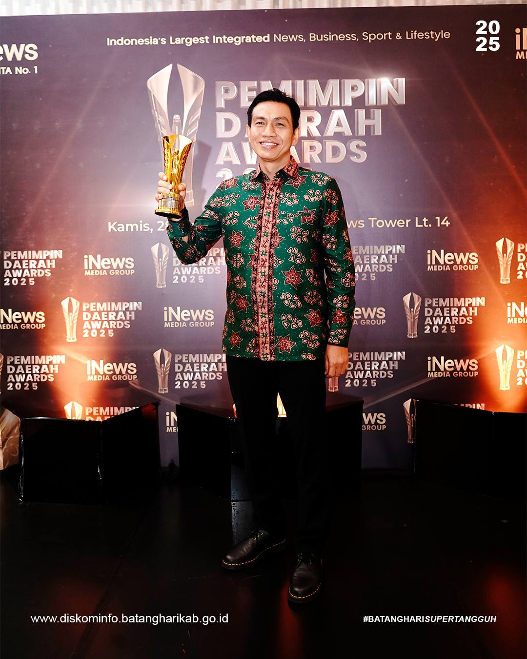 Bupati Batang Hari, Mhd. Fadhil Arief, menerima penghargaan bergengsi "Pemimpin Daerah Awards 2025" dari iNews Media Group di MNC Tower, Jakarta, pada 28 Agustus 2025.